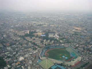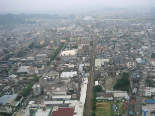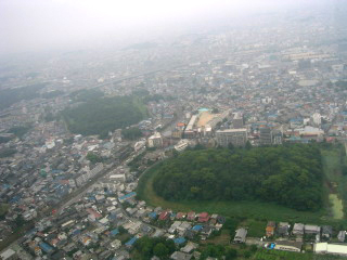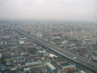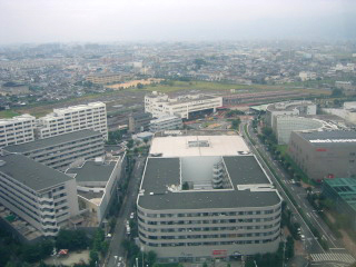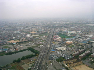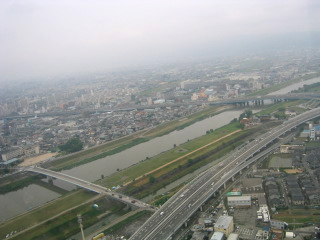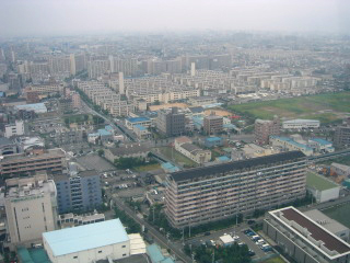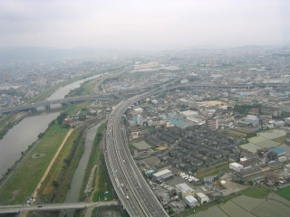 地下鉄谷町線の終点駅「八尾南駅」のロータリーが見えてます。手前右端には「ミキハウス」の本社ビルが。でもまあ、マンションの多い地域ですよね。 |