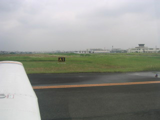 Rwy09の端になります。滑走路への進入許可が出ていませんので、黄色い線の手前側でスタンバイ。離陸前の最終チェックを行いましょう。