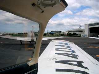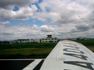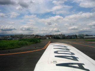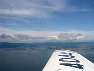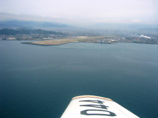 今日は計器飛行方式ではなく、有視界飛行方式で離陸します。航路が決められておらず、天気や気流を見ながら好ましい方向に任意に飛行ができるからです。明石大橋を越えたあたりから計器飛行方式の承認を巡航中にもらうことにしましょう。 |