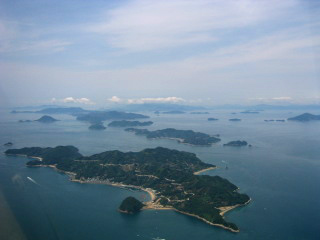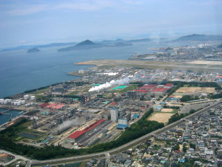 岡山を通過。さらに西に向かいますが、ちょっと視程は悪いかな。雲はまばらですけどね。 |