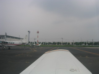 管制塔にもう一度風向きと風速を確認し、テールウィンドで