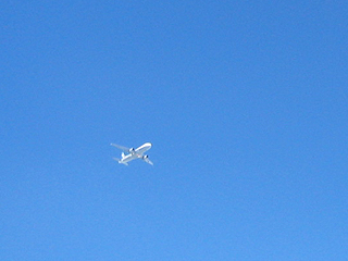 伊丹行き全日空のA320が1,000フィート(約300メートル)上を交差していきます。