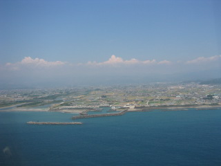 着陸の前に右(東)を見たら小さな港が見えました。 |