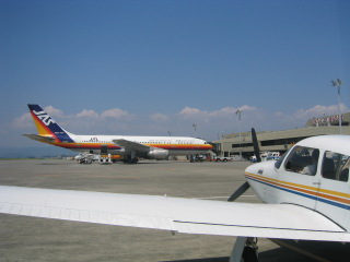 最近は梅雨明けしたとかしないとか。気象庁も天気予報があたらず困っている模様。今日も当初は晴れのち曇りの予報のはずが、大阪地方は曇り。朝、起きてみれば雲がベッタリとしているではありませんか。実際に八尾空港で気象のブリーフィングを受けてみると、曇っているのは関西地方や中国地方だけの模様。南にいけば晴天の天気が報告されています。