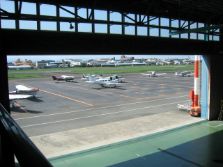 我々は東側の国内線エプロンの南の端に駐機します。 |