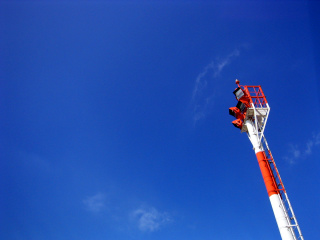 ハンガーから外に出て上を見上げると物凄い青空が待っています。 |
