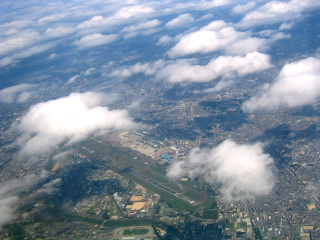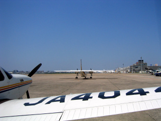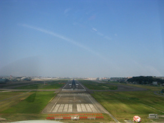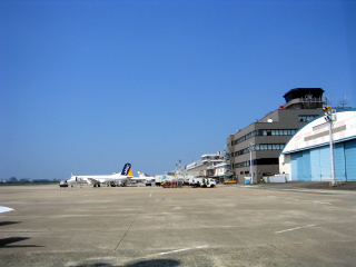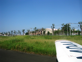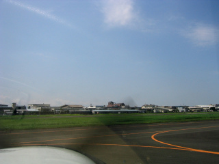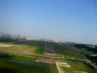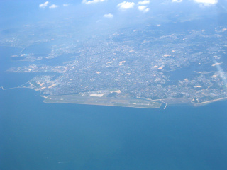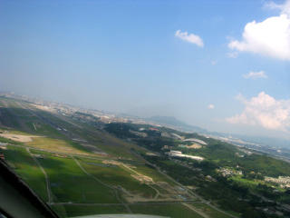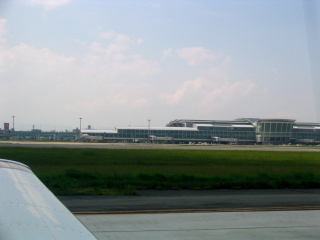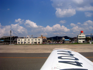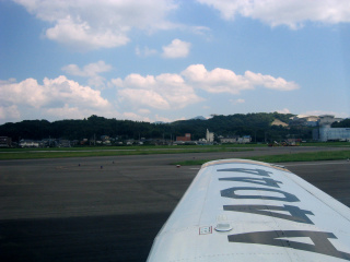 八尾と同じように雲も少ない青空です。飛行機から降りてみると湿度が高く、大阪よりもかなり蒸し暑い感じです。 |