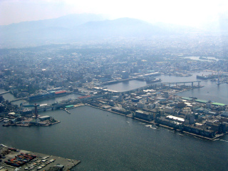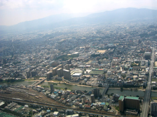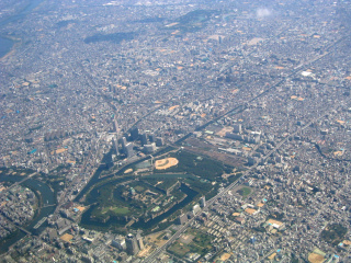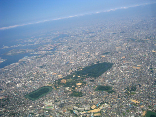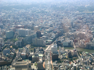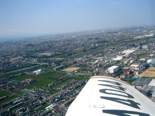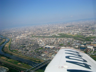 福岡市内の上空です。中州あたりでしょうかね。 |