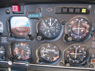 高度計(写真中央の時計のような計器)をみると10,000フィートを指示しています(時計で言うと12時)。パッと見は標高ゼロフィートにいる錯覚がするほど。 |