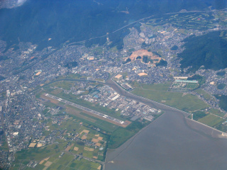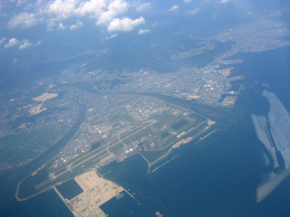 現在の北九州空港上空です。東京から日本エアシステムが毎日数往復をしています。 |