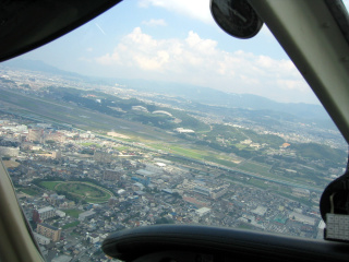 進路を西に向けて飛んでいます。離陸してきた八尾空港が見えていますね。 |