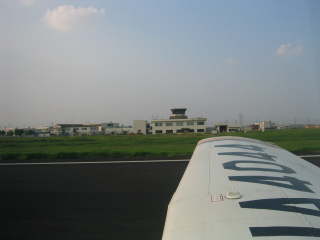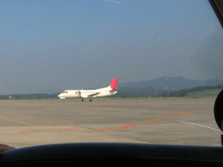 ランプアウトが15:45、Rwy26まで地上滑走を開始します。新塗装された日本エアコミューターが丁度到着、ゲートに向かってタキシング中です。 |