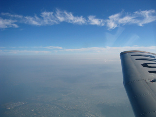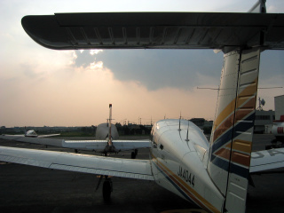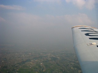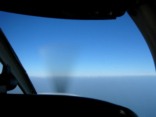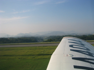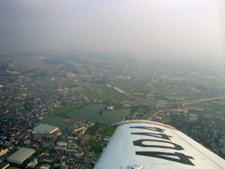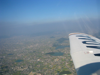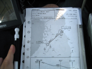 珍しく飛行中の速度を管制官が聞いてきました。このあたりは関西空港へ進入する旅客機が頻繁に通過するからでしょうか。我々の9,000フィートの少し上や下を通過させています。同じ周波数で日本航空、ノースウエスト、ニュージーランド航空、エアーニッポンが交信中。我々の前を降下しながら通過していきます。 |