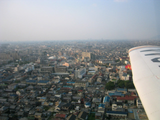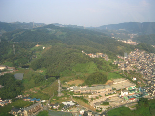 機首は北を向いて生駒山を右に見て飛んでいます。 |