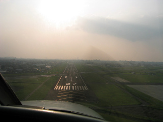 「Roger 4044. Cleared to land runway 27. Wind 340 at 8, cross wind.」右からのクロスウィンドで着陸です。 |