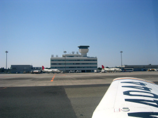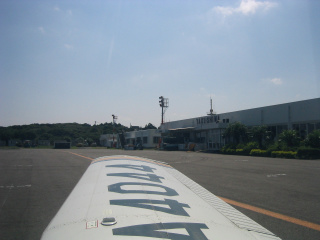 管制塔の前には2機の日本エアコミューター機が留まっています。さっき降りてきたのはどっちでしょうか。 |