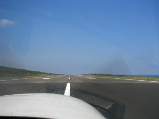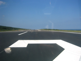 この空港は管制塔が無いので、全ての航空管制は鹿児島にある無線局と交信。彼らはパイロット達の通報を基に情報を提供しているんです。日本エアコミューター機が滑走路から出た通報を受けて我々に滑走路に障害物が報告されていないことを通報してきます。ここでは「離陸許可(Clear for takeoff)」は発令されないのです。 |