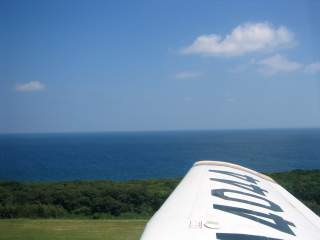 屋久島の海を見ながら飛行機は空に向かって飛び立ちます。 |
