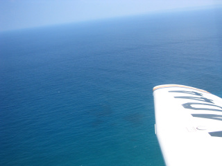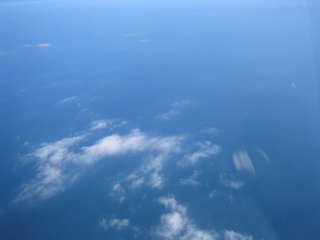 下は真っ青な海。薄い雲が少しだけ見えています。