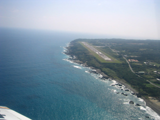後ろを振り返ると離陸してきた屋久島空港が見えています。 |