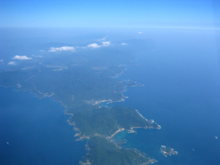 鹿児島県の大隈半島の先端が見えてきました。 |