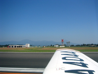 着陸するのを待っていたYS-11が到着しました。彼らが滑走路の端まで行ってUターンしている最中に我々は滑走路に入ります。 |