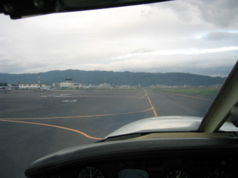 八尾空港はRWY27を利用中。風は北から6ノットと横風ですが比較的に穏やかな北風です。早速RWY27に向かってタキシング。 |