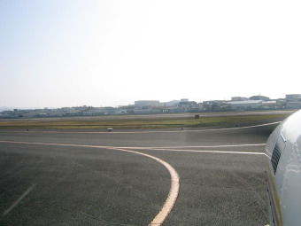 地上管制官とのいつもの通信も今日だけはお正月。新年の挨拶で始まりました。RWY27に向かって誘導路をゆっくりと地上滑走です。軽くブレーキを踏んでのブレーキ・チェック、方向舵の確認、コンパスの正常、等々を確かめながら進んでいきましょう。 |