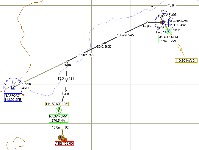 FSNav で作成した旭川空港から新千歳国際空港までのフライトプラン