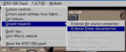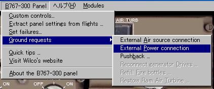 地上電源(GPU)は地上にいる時に 767 グランドリクエストメニューを使って