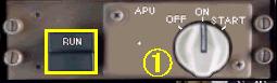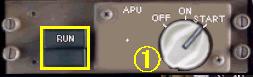 APU・スイッチをスタート位置に回すと、左側に 「RUN」 と点滅表示されます。