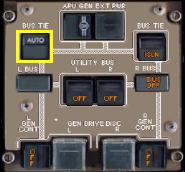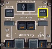 左のBUS・TIEボタンを押し、レフト・AC・バスに電力を供給します。