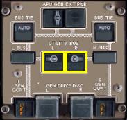 左右のUTILITY・BUSボタンを押し、ユーティリティ・バスに電力を供給します。