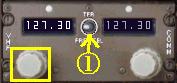 つまみを操作して周波数を合わせます。@のスイッチを左に倒せば左の周波数が、右に倒せば右の周波数が明るく表示され、有効になります。