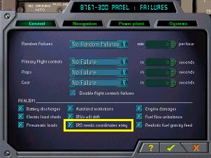 チェックを入れてリアルモードにすると、IRUをNAVに合わせた後、正しく位置情報を設定しなかったばあいは2分後にアライン・ライトが点滅し、位置情報のアラインが正しく完了しなかったことを知らせます。