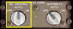 ノー・スモーキング・スイッチがオート・ポジションの場合、ランディング・ギアが完全にエクステンドすればキャビンのノー・スモーキング・サインが点灯し、リトラクトされれば消灯します。