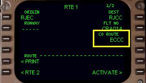 ICAO 略号 「RJEC」 をキーインし、1L LSK を押します。