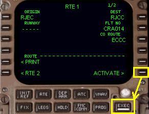 6R LSK ( ACTIVATE ) を押して、「EXEC」 キーを押す2段階の操作となっています。