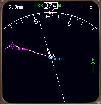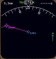 EHSI の 「PLAN」 モードは外側の目盛は機体のノーズの方角を示していますが、ルート表示はそれとはまったく関係無く、いつも北が上になる表示になっています。「MAP」