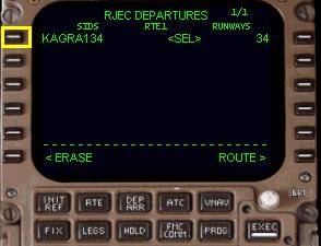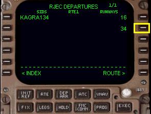 LSK を押して滑走路34 を選択します。どの滑走路が使用されているのかは
