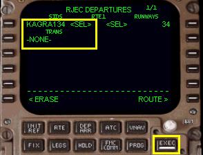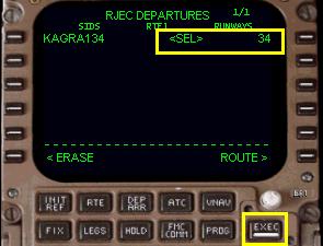 滑走路と SID の選択により 「EXEC」