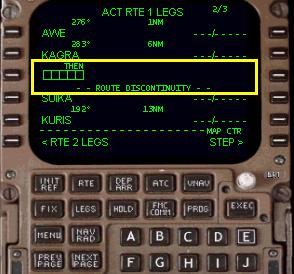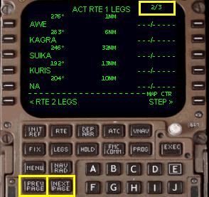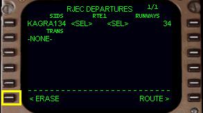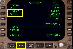 もう一度 「RTE」 ボタンを押してルート・ページにし、滑走路および