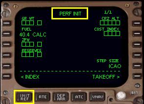 「INIT/REF」 ボタンを押して 「PERF INIT」