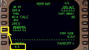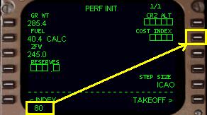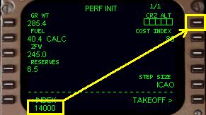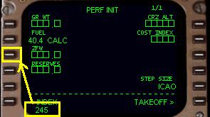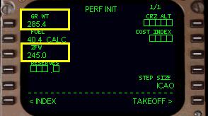 ( ZFW ) からPERF INIT ページのプログラミングを始めます。これは飛行機の重量で、燃料を除いて荷重をプラスしたものです。767PIC