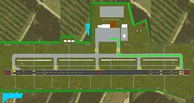 旭川空港の誘導路番号 アルファー・ツー(A2)、タンゴ・ファイブ(T5) を通って滑走路34にタクシーします
