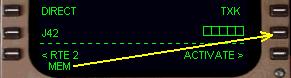 これは航空路の入力が FMC がルート上の航空路を受け入れるために命令された表示です