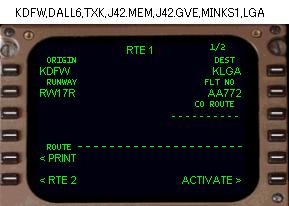 以前に述べたとおなじ、KDFW から KLGA へのフライトのプログラミングをやってみましょう
