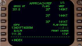 現在の飛行機の 1L データブロックにリストされているグロスウェイトによるアプローチスピードが計算され表示されます