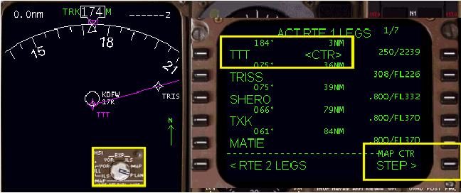 上の図では、TTT ウェイポイントは EHSI マップの中央に表示され、