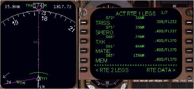 ここでの例では、6R LSK を押すと TRISS ウェイポイントがマップの中央に移動、表示されます